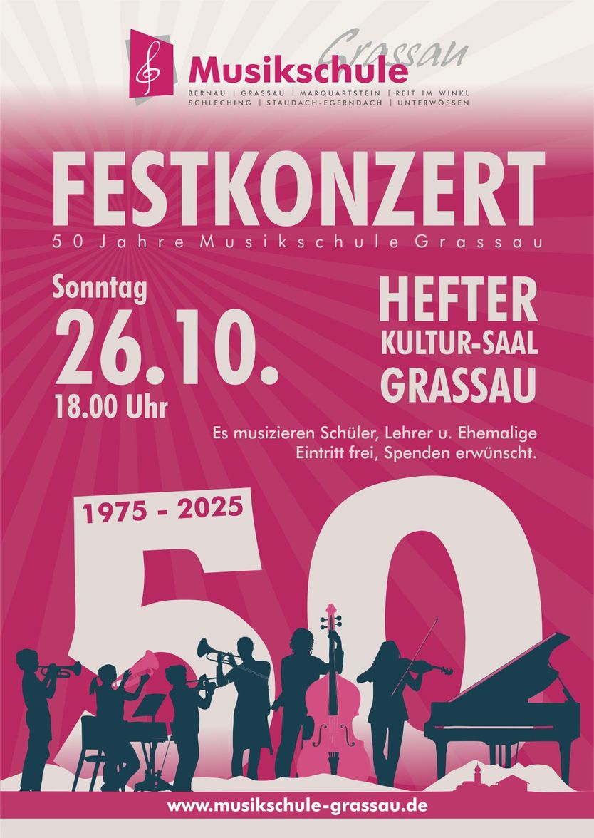 Nach einer erfolgreichen Fusion im Jahr 2016 ist die Musikschule Grassau die musikalische Bildungseinrichtung mit ungefähr 1100 Schülern in sieben Orten im südlichen Chiemgau. Die Musikschule mit Sitz in Grassau, unterhält Zweigstellen in Bernau am Chiemsee, Marquartstein, Reit im Winkl, Schleching, Staudach-Egerndach und Unterwössen.