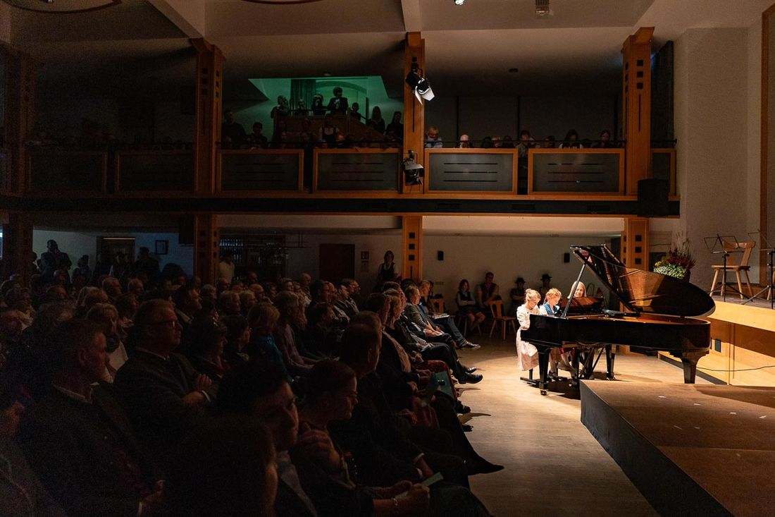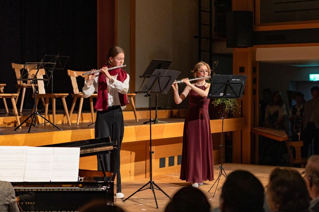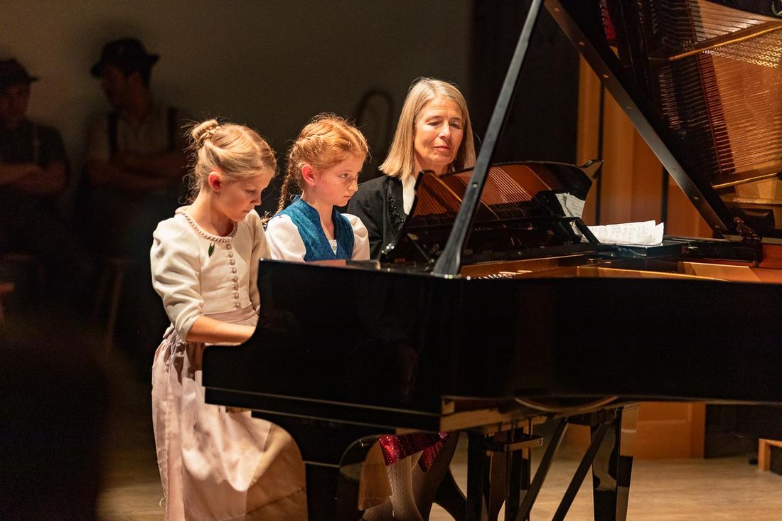 Luise Noichl und Lotta Würth spielten vierhändig am Flügel Franz Schuberts „Kindermarsch“. Antonia Fußeder leistete ihrem Vater Stefan am Akkordeon selbstbewusst Gesellschaft („Sommer 09“ von Franz Zeller). Das Flöten-Duo Sophia Mayer und Aglae von Radowitz brillierte mit Mendelssohn-Bartholdys „Herbstlied op.63, Nr.4“.