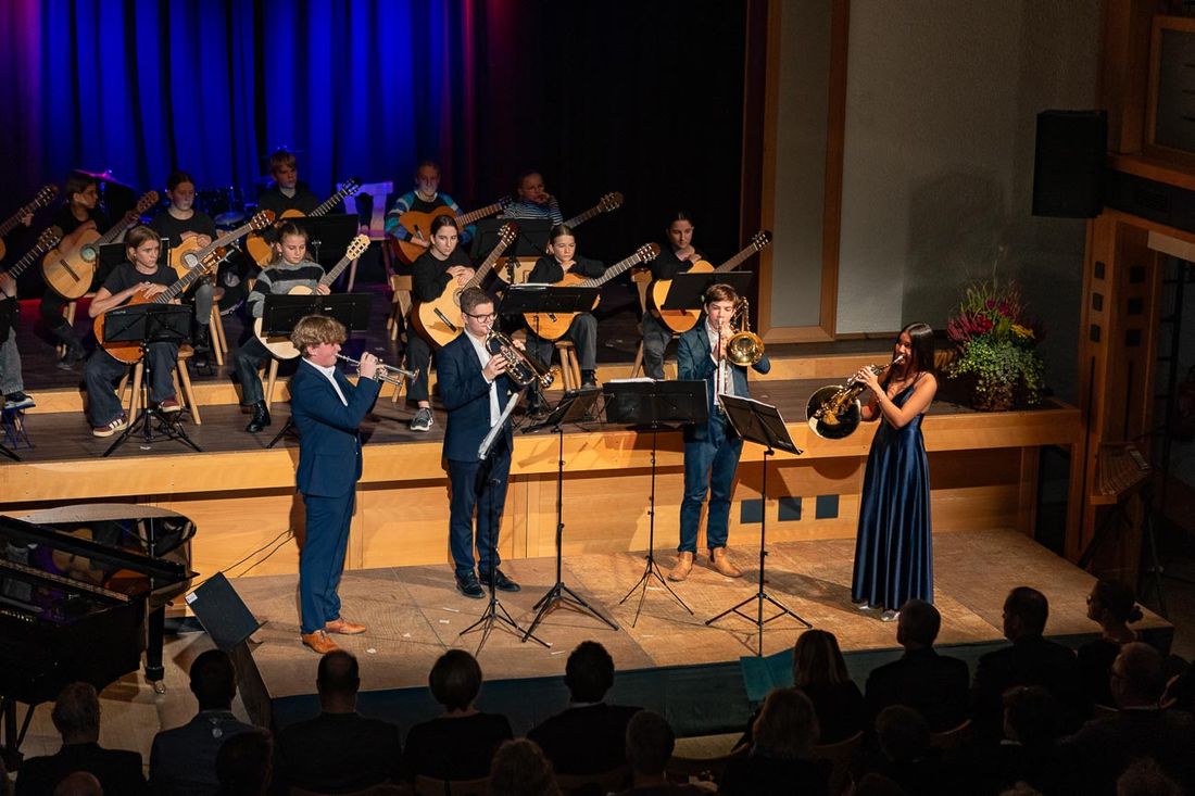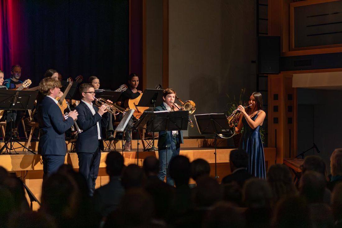Das nächste Stück ließ das Publikum besonders staunen: Die Jugendlichen des Ensembles „10er Brass“ spielten unter der Leitung von Johann Schmuck Chris Hazells Stück „Kraken“ so hervorragend, dass sie sich in 2026 am Europäischen Musikfestival in Belgien beteiligen möchten.