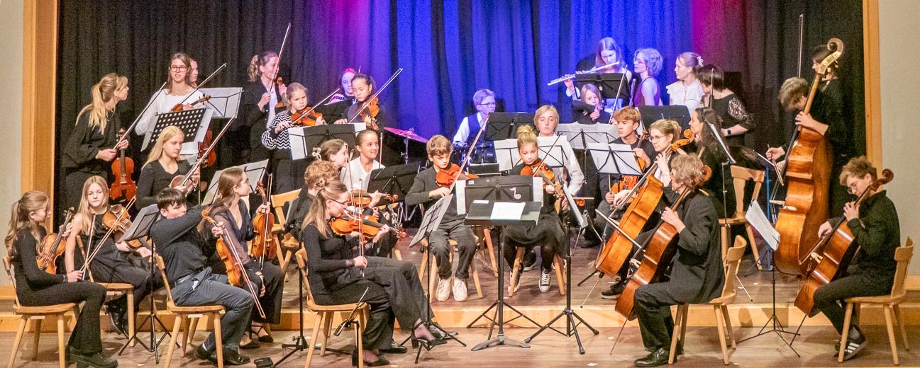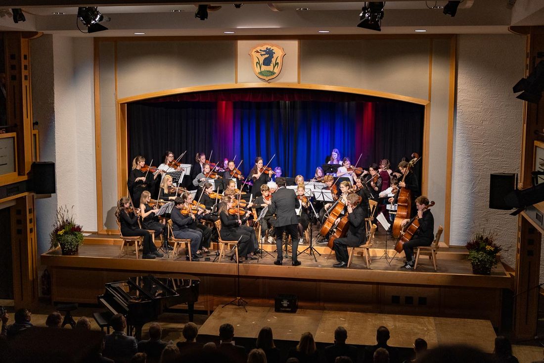 Der zweite Teil des Abends begann mit der Überraschung, dass das knapp vierzigköpfige „Streichorchester Achental“ mit jungen Musikschülerinnen und -schülern – verstärkt von wenigen Lehrkräften – nicht nur die „Kleine Nachtmusik“ von Mozart aufführte, sondern auch ein Stück von Michael Jackson im Arrangement von David Garrett (Orchestersatz: C. Böck).