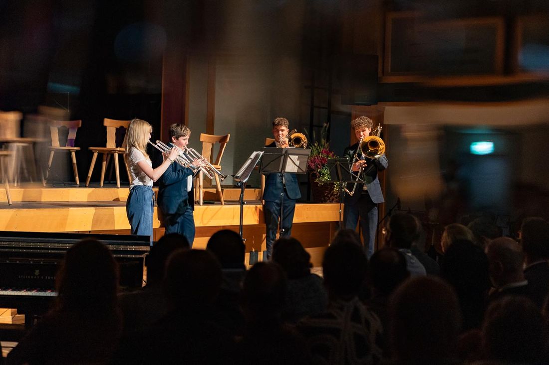 Die Kraft des Ensemblespiels trat auch bei den vier „Blechdachsen“ zu Tage: an der Trompete Antonia Fußeder und Johann Schmuck jun. sowie Anian Fakler und Kilian Kroiss. Sie spielten energisch Enrique Crespos „The Battle of Jericho“.